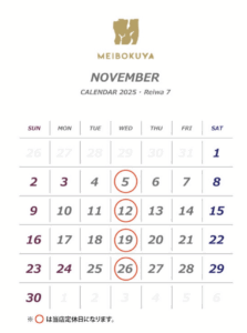 2025年11月の店休日は下記の通りとなっております。